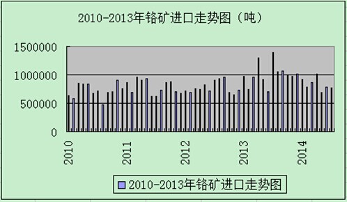 图1. 2010-2013年中国铬矿进口量变化