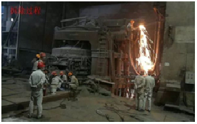 11月1日,马钢长材事业部职工在拆除1号转炉炉壳。 10月31日晚,服役30年之久的马钢长材事业部北区1号转炉正式关停。该转炉为40吨的顶底复吹转炉,此次永久关停,将退出炼钢产能64万吨。(来源:网络)
