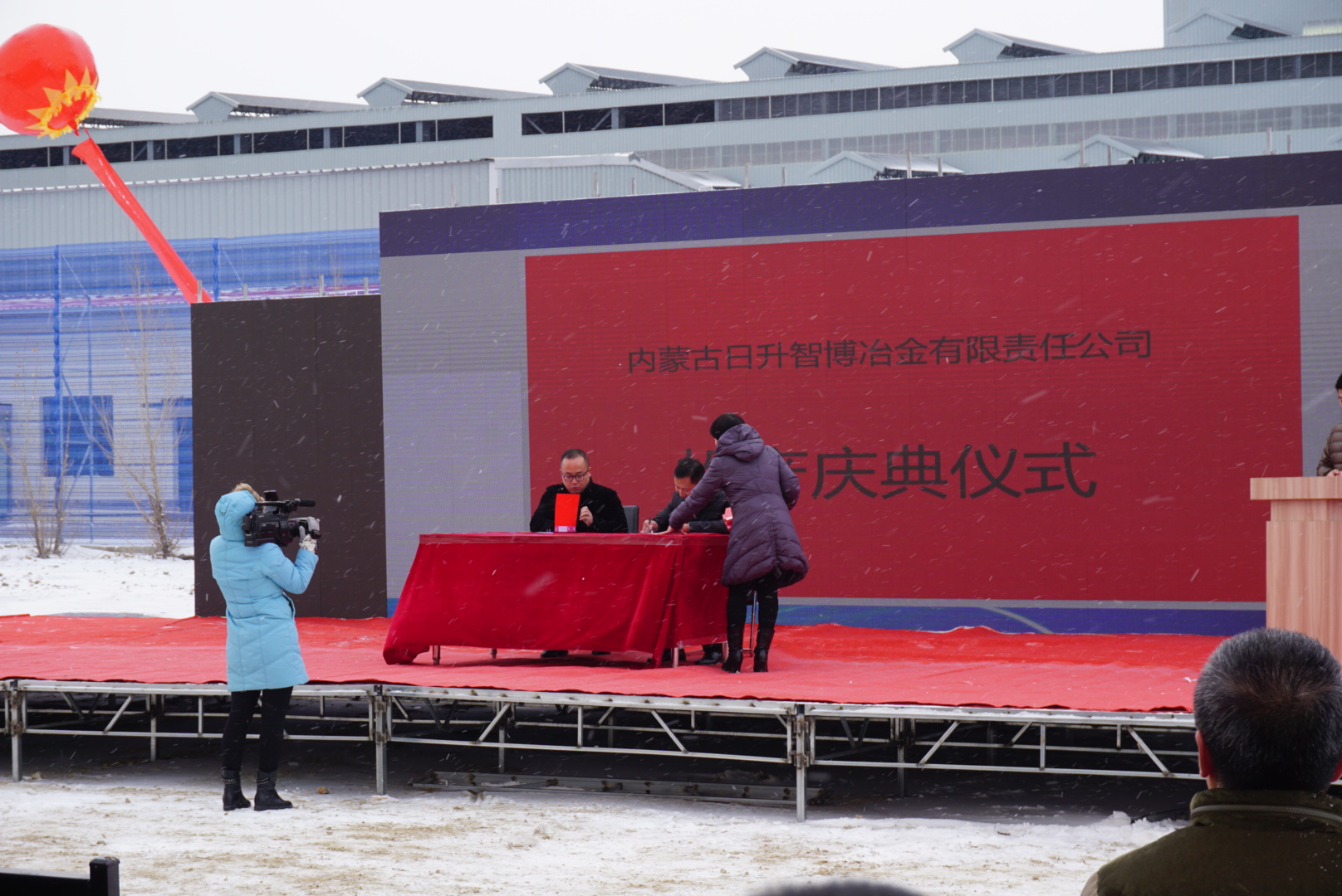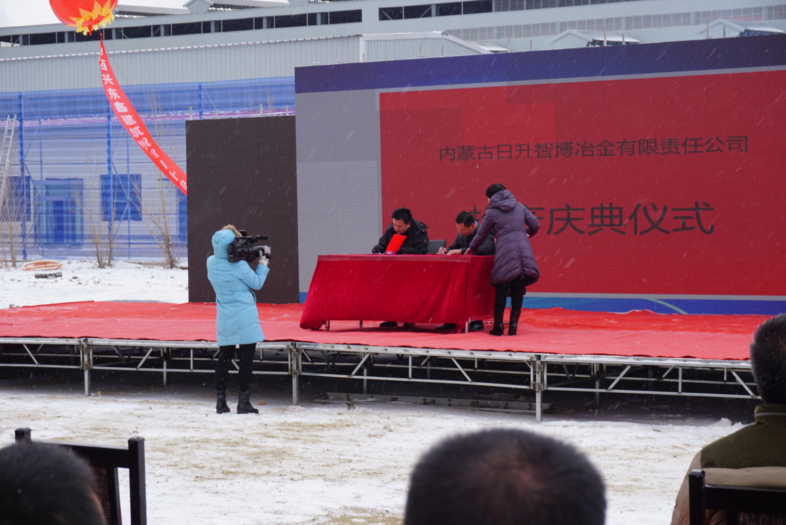 中国铁合金网讯:2017年11月25日上午,大雪漫天飞舞,却依然抵挡不了各位来宾的热情。内蒙古日升智博冶金有限责任公司举行隆重开业庆典,中国铁合金网受邀参加此次庆典,现场园区朱书记,环保局赵局长,电力局张局长等等领导纷纷出席开业典礼。