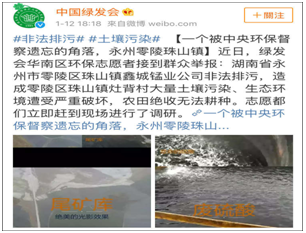 该微博附上了微信公众号“华南环境报道”6日的文章《一个被中央环保督查遗忘的角落,永州零陵珠山镇》。