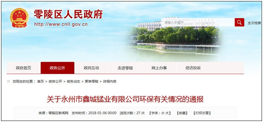 但是,微信公众号“华南环境报道”8日继续发文《零陵区鑫城锰业污染是政府的缺席?还是企业的任性?》。