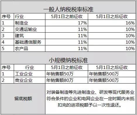 从2018年5月1日起,实施以下深化增值税改革征收标准如下: