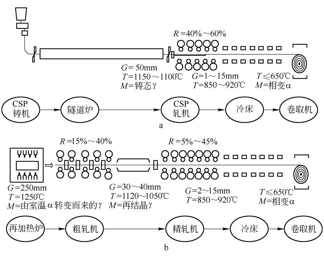 薄板坯连铸连轧工艺(a)与传统轧制工艺(b)