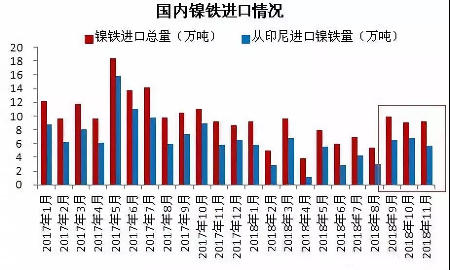 据目前市场已出的11月海关数据显示,11月我国从印尼镍铁进口量约有84287实物吨。比此前预估的进口量少约3万吨左右。其中德龙进口镍铁约4万吨,新兴主管进口约1万吨,华迪镍业进口2千吨,青山进口约3万吨。