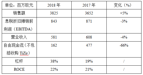 受益于金属价格上涨,2018年的销售额增长5%,达38.25亿欧元;