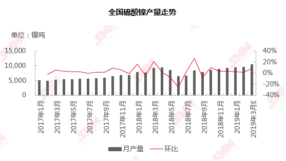 【中国铁合金网讯】据SMM调研,2月中国硫酸镍产量9647吨金属量,实物量为4.39万吨实物,环比增1.50%。尽管2月受生产天数减少及硫酸镍工厂春节放假影响,不少工厂产量下滑,但因多家硫酸镍工厂于去年底及年后新增了硫酸镍产能,导致2月全国硫酸镍产量不减反增。不仅如此,SMM初步统计,3月硫酸镍工厂节后恢复正常生产以及新产能继续释放,硫酸镍产量或继续爬坡,环比增8.44%至1.05万金属吨,全国硫酸镍月产量或首次突破一万金属吨!