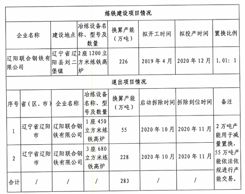 【中国铁合金网讯】按照《国务院关于化解产能严重过剩矛盾的指导意见》《国务院关于钢铁行业化解过剩产能实现脱困发展的意见》和《钢铁行业产能置换实施办法》要求,现将辽阳联合钢铁有限公司钢铁建设项目产能置换方案予以公告,欢迎社会公众进行监督。