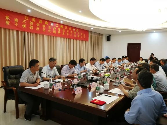 会上,省表协常务副秘书长王浩铭、扬州佳境环境科技股份有限公司董事长张临苏分别讲话并致欢迎词。省表协秘书长桑保华、省表协技术委员会主任陈智栋、我镇党委书记夏爱东、扬州佳境科技董事长张临苏共同为“不锈钢表面处理研发中心”揭牌。省表协技术委员会主任陈智栋为技委会“不锈钢表面处理研发中心”负责人颁发聘书。新源环保公司与省表协合作,成立“不锈钢表面处理研发中心”,标志着新源环保在科技创新的道路上迈出了值得期待的一步,通过技术引领推动不锈钢高品质的应用,不仅是戴南不锈钢行业高质量发展的使命,也是“不锈钢表面处理研发中心”的使命,这种使命感会让双方在未来的合作中激发出不可估量的创造力。据了解,江苏省表面工程行业协会是全省电镀、化学镀、热浸镀、热喷涂、涂装、涂料、真空镀、达克罗等表面处理加工及设备、材料相关企业进行组织协调、信息引导、咨询服务、技术交流,与政府部门沟通的省级行业组织。与会人员一同考察了新源环保不锈钢表面处理中心及生产现场。