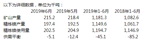 INSG补充表示,今年前6个月,全球镍市供不应求45,100吨,上年同期为短缺85,200吨。