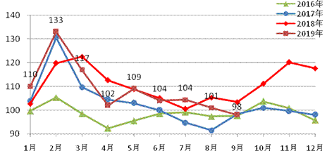 中国铁合金网讯:2019年9月,全国20个城市5大类品种钢材社会库存合计环比有所减少,并且5大品种库存均有不同程度下降。本月库存总量1331万吨,环比减少71万吨,下降5.1%;其中钢材市场库存总量1239万吨,环比减少76万吨,下降5.8%,港口库存92万吨,环比增加5万吨,上升5.5%。具体见图1、图2、图3。
