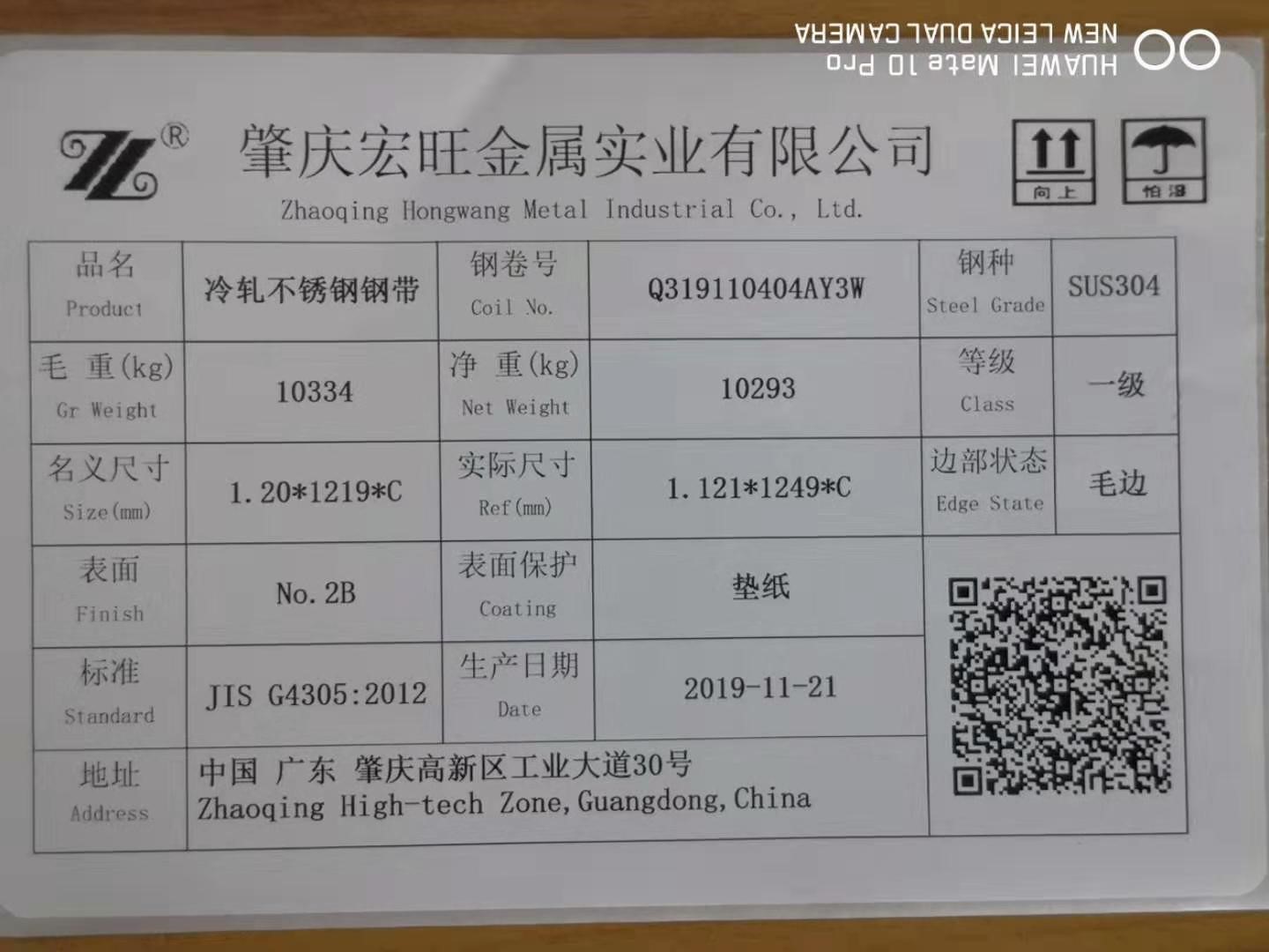一、同意宏旺投资集团有限公司生产的“宏旺(图形商标)”牌不锈钢冷轧卷板SUS304牌号产品在我所注册。