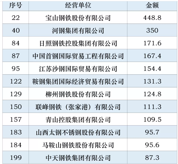 在2019年中国进口企业200强中,共有12家钢铁企业,具体整理如下表: