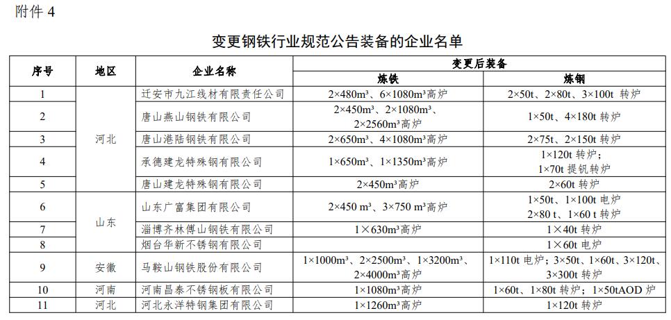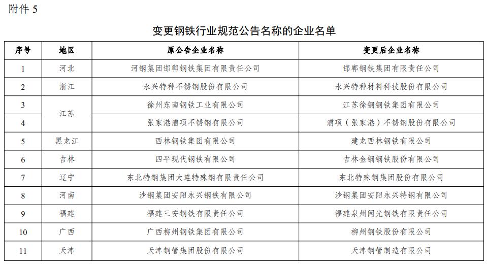 1.符合《钢铁行业规范条件》企业名单(第五批)