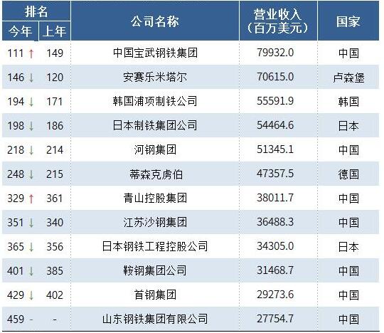 8月10日,《财富》中文网发布了2020年《财富》世界500强排行榜。据统计,今年世界范围内共有12家钢企入选世界500强。其中,排名前三的钢铁企业为中国宝武钢铁集团、安赛乐米塔尔、韩国浦项制铁公司,排名分别为第111名、146名和194名。
