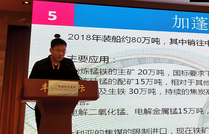 凝心聚力,行稳致远。本次会议由中国铁合金网(Ferro-Alloys.com)和中国铁合金工业协会主办,湖南铁合金工业协会、山西铁合金行业协会、宁夏冶金行业协会、乌兰察布铁合金行业协会共同支持,永州万事达锰业有限公司,嘉禾县信拓工贸有限公司、美联(中国)投资贸易有限公司协办,邀请了多位业内相关协会领导、全国范围内富锰渣知名企业共聚一堂,针对富锰渣冶炼技术、产业环保政策、行业整体走向等议题进行了分享和探讨。美联(中国)投资贸易有限公司首席代理杨韬在本次会议上从指标、用户群、用途及应用开发等方面系统介绍了加蓬锰矿的优势及特点。