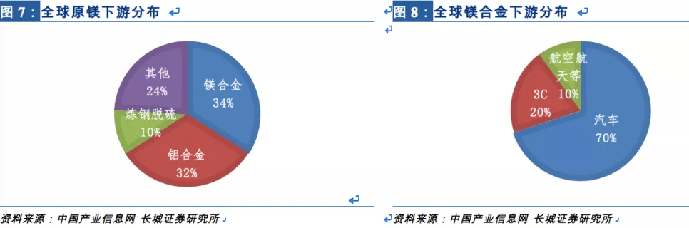 原镁下游需求主要分为:镁合金加工深加工(汽车、3C压铸件)、铝合金(建筑、交通运输)冶金添加原料(铝合金、稀土合金、炼钢脱硫等)、其他领域(金属冶炼还原剂等);而全球镁合金压铸产品下游约70%消费于汽车领域、20%应用于3C领域。考虑到铝合金下游20%左右用于包括汽车在内的交通运输领域,与影响镁价最为显著的产业当属汽车行业。