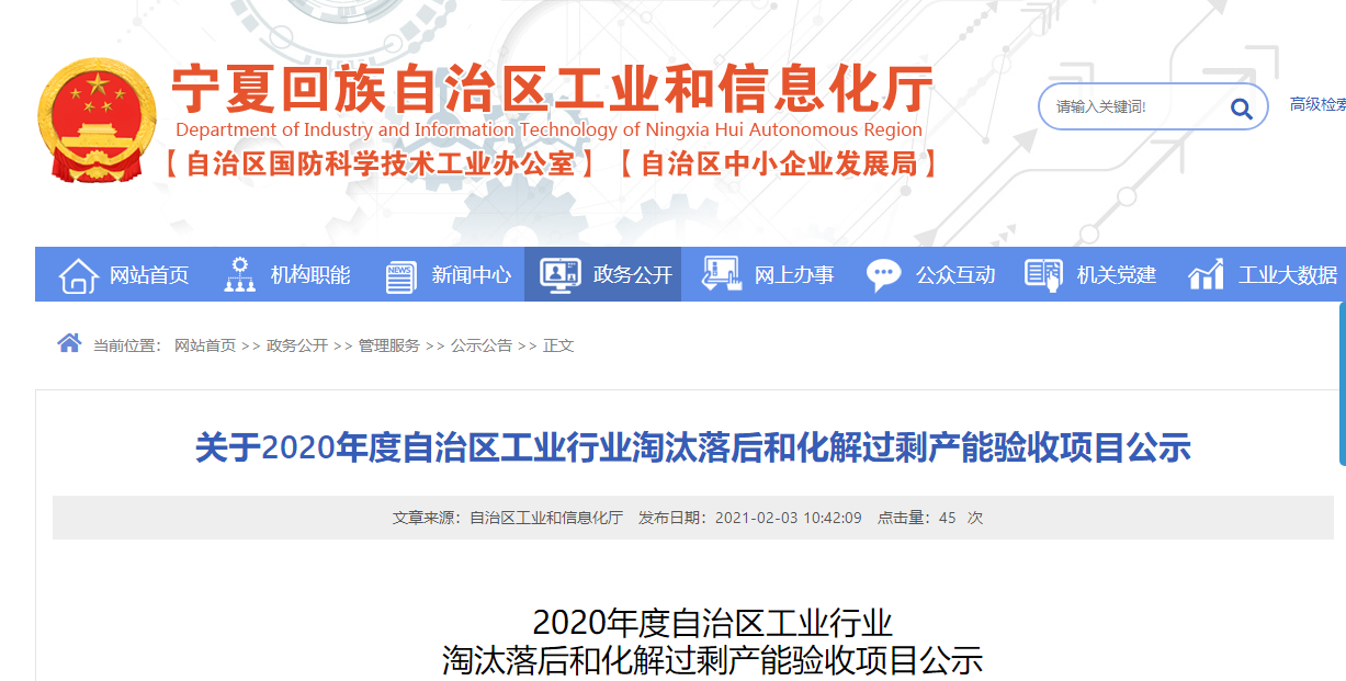 原文链接:2020年度自治区工业行业淘汰落后和化解过剩产能验收项目公示名单