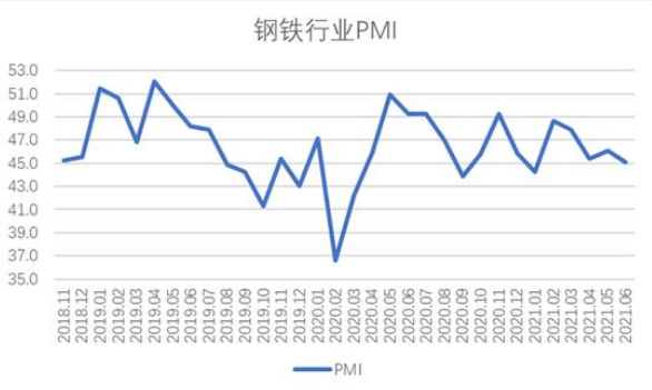 中国铁合金网讯:从中物联钢铁物流专业委员会调查、发布的钢铁行业PMI来看,6月份为45.1%,环比下降1.0个百分点。分项指数变化显示,市场需求放缓,对行业支撑作用有所减弱。钢材生产增速保持在扩张区间,供需矛盾加大。预计7月份,市场需求继续偏紧,钢铁价格弱势震荡,原材料价格仍有上升空间,钢厂生产增速或继续下降。