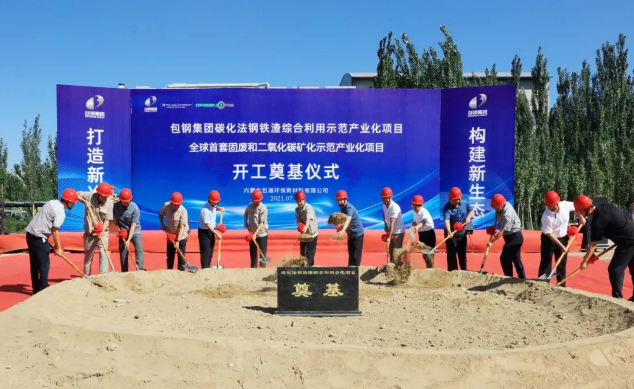 中国铁合金网讯:7月31日,全球首台套“碳化法钢铁渣综合利用一期二阶段10万吨示范产业化项目”在内蒙古包头市包钢集团厂区培土奠基,正式开工建设,该项目也是全球首套固废和二氧化碳矿化示范产业化项目。
