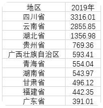 表:2019年水电发电量前十省份(单位:亿千瓦时 来源:国家统计局)