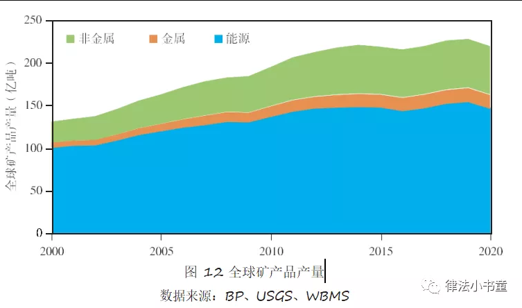 (三)2020 年全球矿产品总产量 218 亿吨,同比下降 3.7%