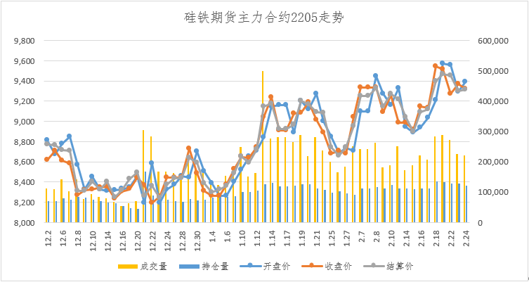 2月硅铁期货盘面主力合约继续波动震荡,飘忽不定,难以捉摸,但较往年仍相对高位。