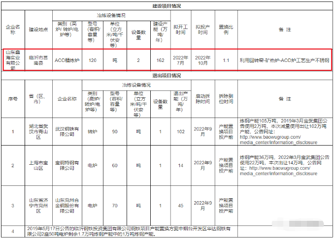 按照《国务院关于化解产能严重过剩矛盾的指导意见》《国务院关于钢铁行业化解过剩产能实现脱困发展的意见》和《钢铁行业产能置换实施办法》要求,现将山东鑫海实业有限公司年产162万吨高端不锈钢合金材料工程炼钢产能置换方案予以公示,欢迎社会公众进行监督。公示期为2022年7月4日至2022年7月29日,监督电话为0531-51782886。山东工信