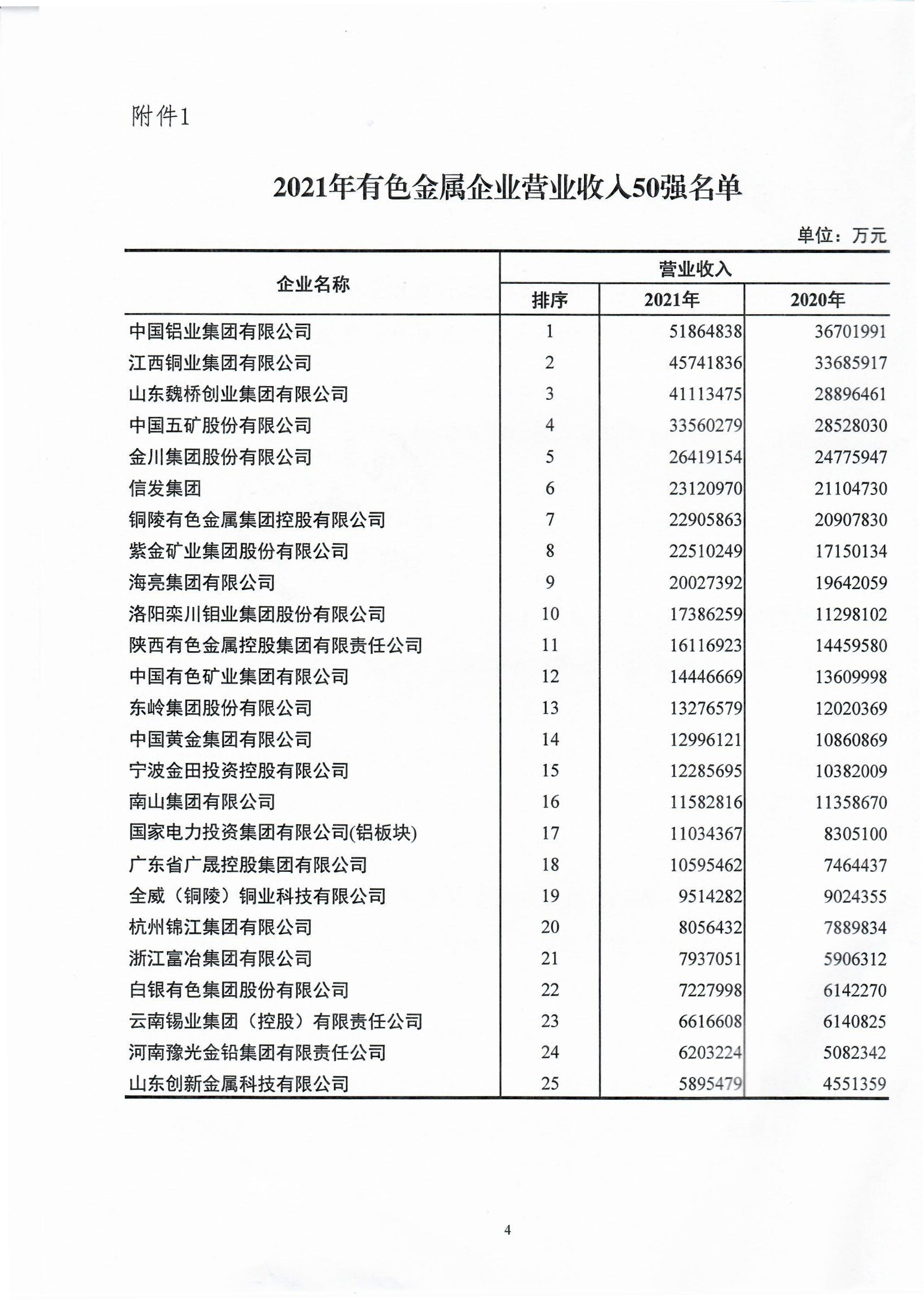 中国铁合金网:2021年有色金属企业营业收入五十强及海外资产二十强发布