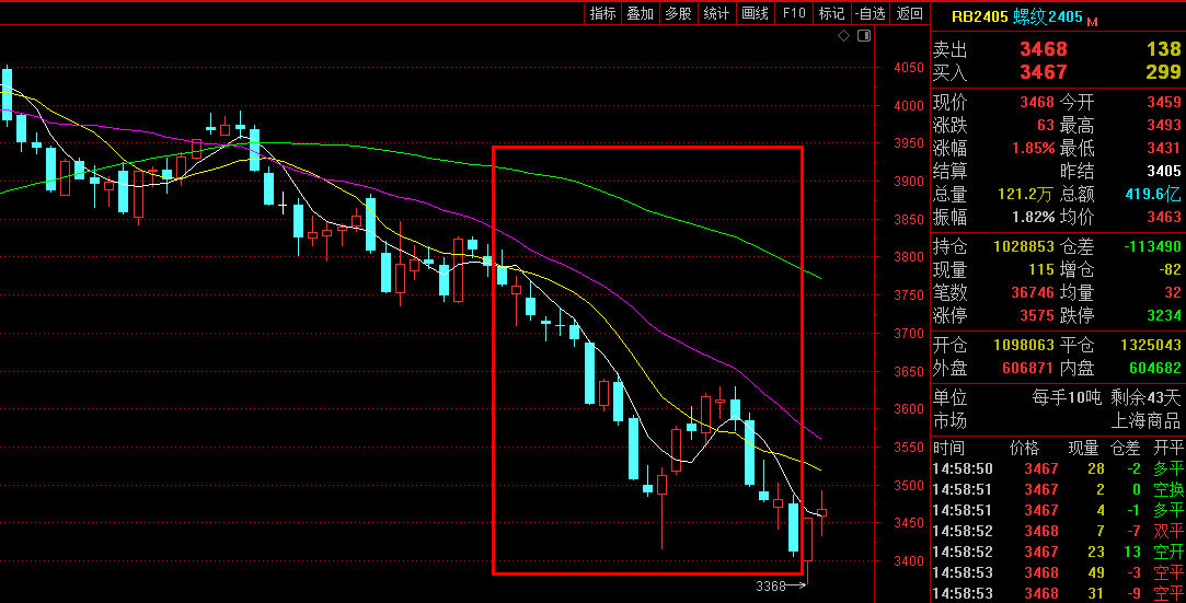 期货端:3月2405主力合约震荡下行,月开盘价6668元/吨,最高价6696元/吨,最低价6340元/吨,收盘价6406元/吨,结算价6376元/吨,持仓量188554手,成交量2094228手,成交金额682.606亿元,跌幅4.10%。