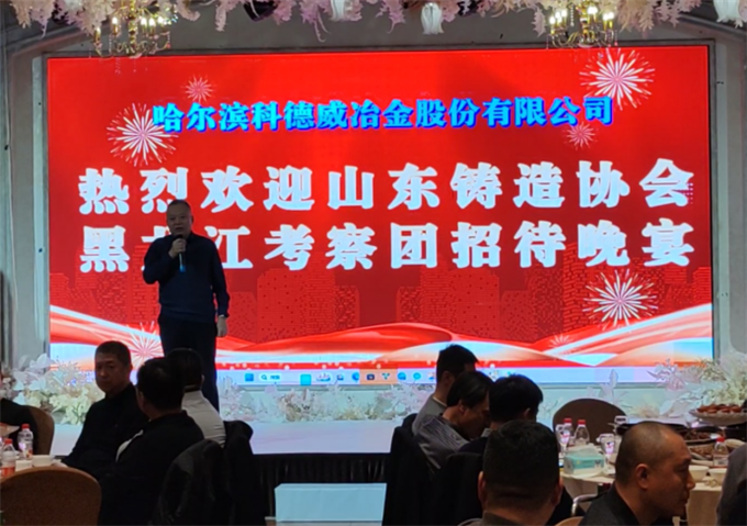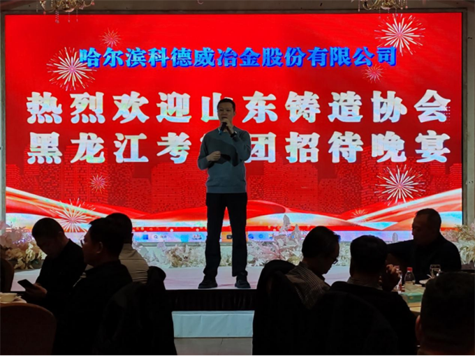欢迎晚宴上,科德威公司董事长吴斐发表讲话,对考察团再次表示热烈欢迎,并系统阐述了公司的未来发展方向,清晰勾勒出在技术创新、绿色铸造实践与国际市场开拓等关键领域的战略蓝图与实践路径。