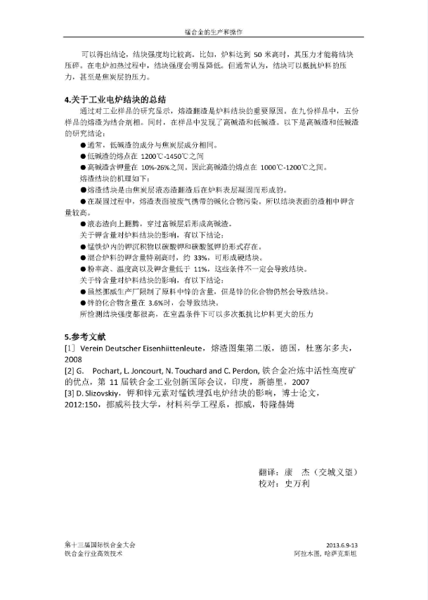 锰铁埋弧电炉中炉料的结块