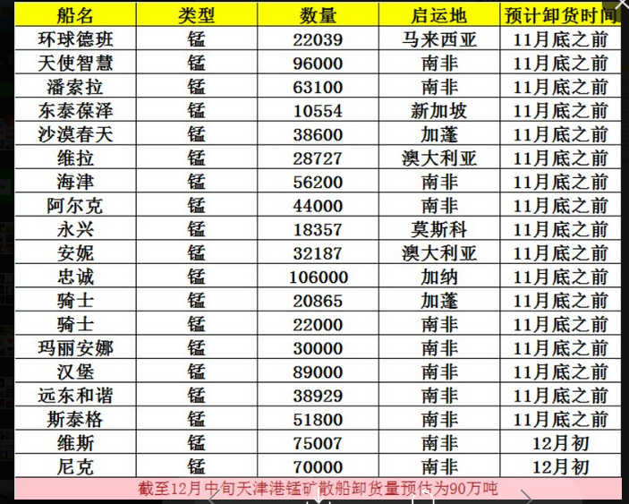 锰矿:据传South32十一月对华锰矿装船报价上调到8.5美元/吨度