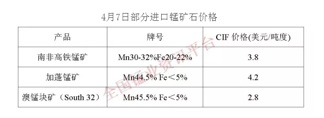 锰矿:3月锰矿现货价格先涨后降