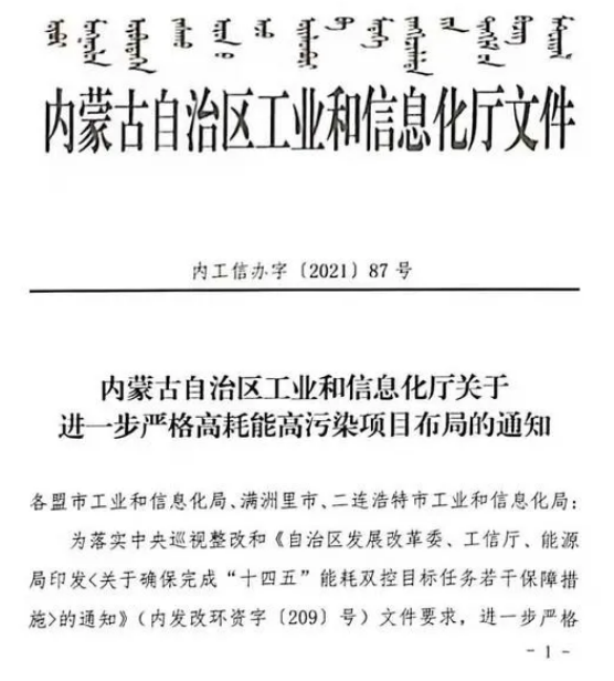 内蒙古自治区发展改革委_工信厅_能源局印发《关于确保完成“十四五”能耗双控目标若干保障措施》的通知
