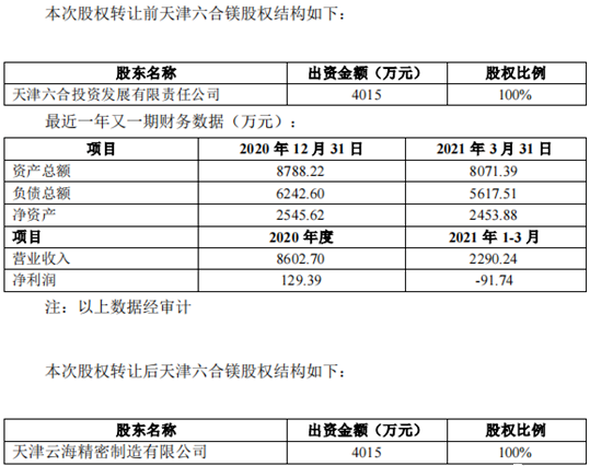 云海金属全资收购天津六合镁制品有限公司,布局天津服务北方汽车用户!