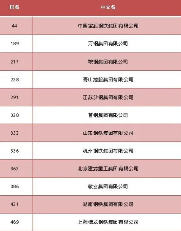 8月3日,2022《财富》世界500强排行榜发布,12家钢企上榜。其中,新增3家企业,分别为杭州钢铁集团有限公司、湖南钢铁集团有限公司、上海德龙钢铁集团有限公司。 |