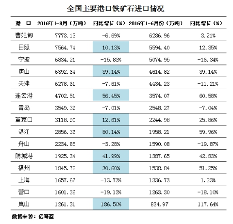 铁矿石进口量正不断攀升,亿海蓝航运大数据部分析师Zach认为四季度铁矿石进口量会维持高位。“按今年钢材行情改善的情况预计,四季度铁矿石维持目前的这种高位态势应该没有问题,今年的进口总量或将突破10亿吨。”亿海蓝航运大数据部分析师Zach预测说道,“铁矿石进口量的大增,... |