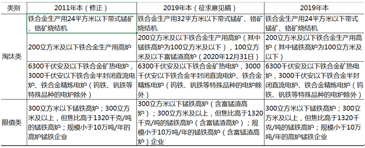 2019年10月30日,国家发展改革委修订发布了《产业结构调整指导目录(2019年本)》(以下简称《目录(2019年本)》)。其中,关于铁合金产业的相关政策基本没变,但是并没有明确富锰渣高炉执行标准。