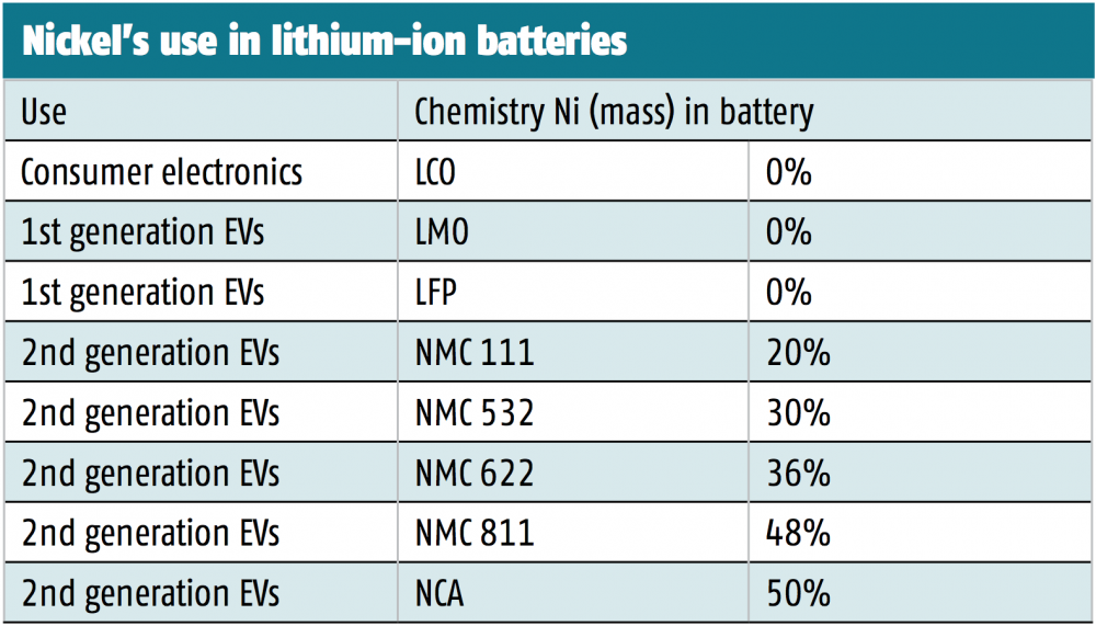 3) There will be increasing amounts of nickel going into each battery cell