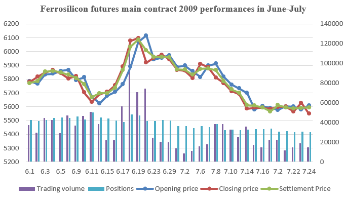 [Spot market] This week, the operating rate of ferrosilicon enterprises and output have not changed much, and at the same time, it is reported that there are enterprises in the main production area would shut down arc furnaces for maintenance. At present, the tight spot supply situation has been eased. In the case of no obvious improvement in actual demand, the price slightly dropped, the wait-and-see sentiment continues. Pay attention to the change of steel bidding and supply-demand relationship in August.