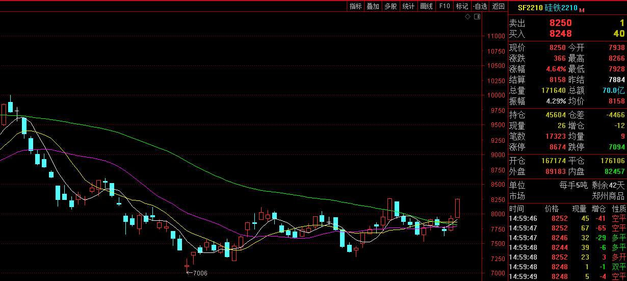 The weekly opening price of 2210 main contract was 7,806, the highest price was 8,266, the lowest price was 7,622, the closing price was 8,250, the settlement price was 8,158, the trading volume was 680,123, and the position was 45,604, up 7.48%.