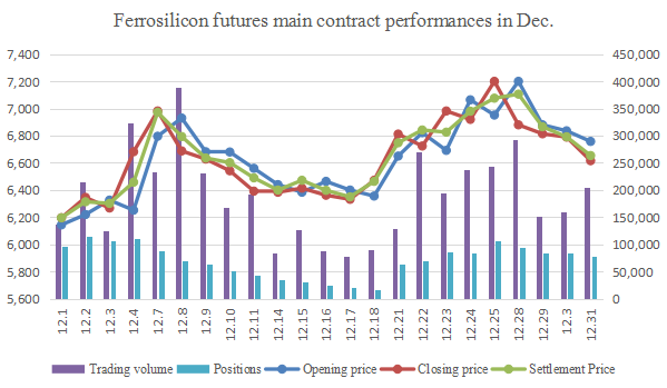 The 2105 ferrosilicon contract price on ZCE closed at 6616 yuan per ton on December 31. |