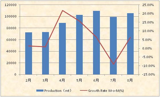 From January to August, 2016, China’s electrolytic manganese flake 99.7% production was about 723,531mt, it increased in each month before June. While in July, it reduced as a result of environmental protection check, lack of raw materials, etc. Since mid-Aug... |