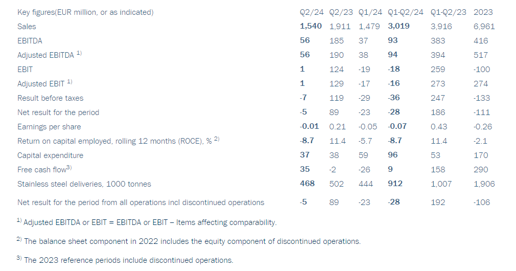 Outokumpu half-year report January–June 2024 - Good profitability improvement from the first quarter, driven by business area Europe