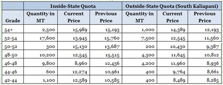 中国铁合金网讯:在8月份铬矿拍卖中,印度奥里萨邦矿业公司上调了奥里萨邦以外买家的价格,而针对奥里萨邦地区的买家,则下调了部分矿种价格的价格,另外一些矿种,例如品味为54+, 50-52, 44-46 和 42-44的铬矿价格每吨分别上调了796卢比,1,443卢比1,313卢比以及2,004卢比。