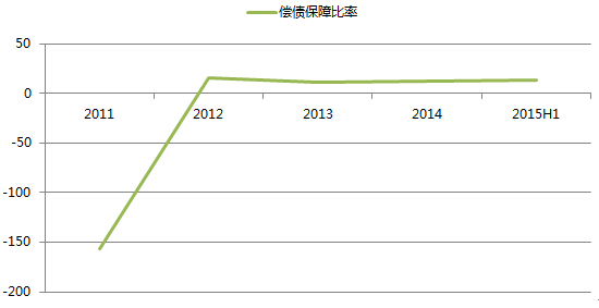 1、偿付债务能力:资产负债率一般认为小于60%是适宜的,从上图可见,嘉能可负债率一直处于60%以上,而且都呈上行趋势,逼近2012年67.62%,剔除无形资产不宜偿债的因素外,其有形净值债务率在2015年有上升的趋势,从其产权比率曲线来看,2013-2015年相对来说比较平稳,表面债权人贷款的安全性保障比较稳健。