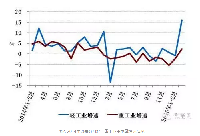 1-3月份,全国工业用电量9121亿千瓦时,同比增长0.2%,增速比上年同期提高0.8个百分点,占全社会用电量的比重为67.4%,对全社会用电量增长的贡献率为3.5%。其中,轻工业用电量1494亿千瓦时,同比增长4.3%,增速比上年同期提高2.5个百分点;重工业用电量为7627亿千瓦时,同比下降0.6%,增速比上年同期提高0.5个百分点。