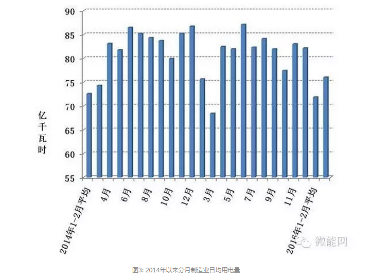 1-3月份,全国制造业用电量6670亿千瓦时,同比下降1.5%,增速比上年同期回落1.5个百分点。3月份,全国制造业用电量2357亿千瓦时,同比增长8.2%;制造业日均用电量76.0亿千瓦时/天,分别比上年同期和前两月增加7.6亿千瓦时/天和4.2亿千瓦时/天。