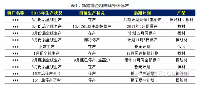 二、新疆钢厂陆续进入冬休停产