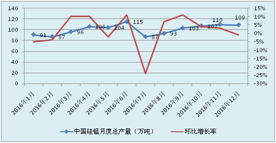从总体需求来看,中国2016年粗钢产量8.03亿吨,与2015年粗钢产量8.04亿吨相比,略有减少。根据政府发布的信息,2017年将开始真正去产能、产量,淘汰约3700万吨,预估全年粗钢产量回落至8亿吨左右。2016年12月14日,工信部发布《钢铁工业调整升级规划(2016-2020年)》。《规划》提出,到2020年,钢铁工业供给侧结构性改革取得重大进展。《规划》提出,到2020年,国内粗钢消费量将下降至6.5亿-7亿吨,粗钢产量下降7.5亿-8亿吨。粗钢产能净减少1亿-1.5亿吨,到2020年将产能控制在10亿吨以下。按照这个趋势,国内对硅锰产品的需求呈现较少的趋势。